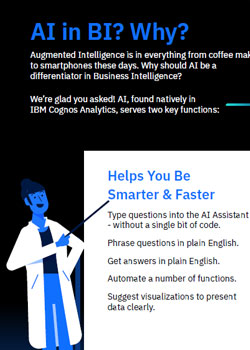 Augmented Intelligence is in everything from coffee makers to smartphones these days. Why should AI be a differentiator in Business Intelligence? We’re glad you asked! AI, found natively in IBM Cognos Analytics, serves two key functions. Learn how you can value it!
